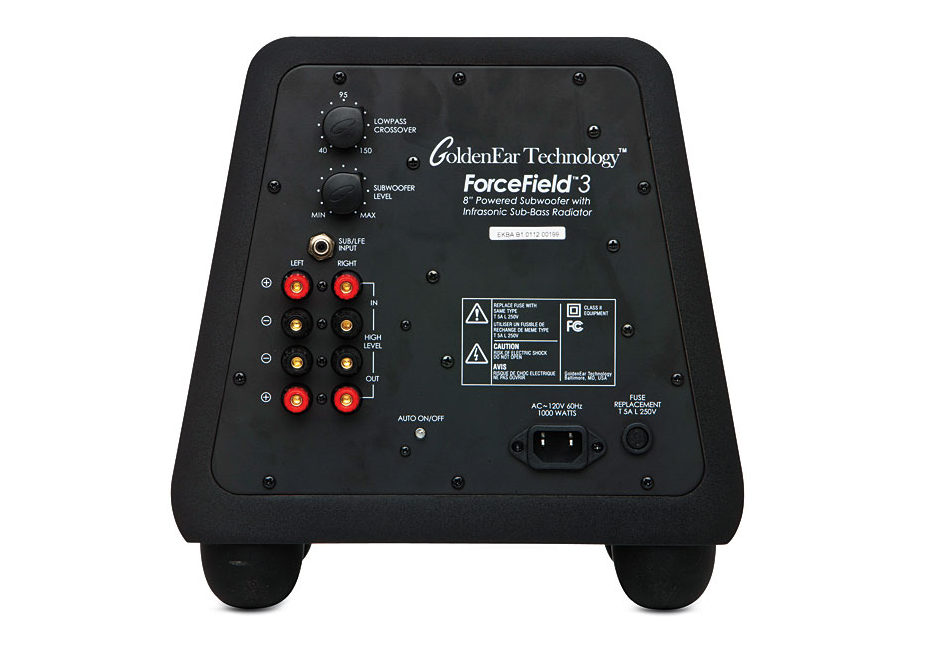 The ultra-compact ForceField 3 is the smallest and most affordable ForceField sub – but don’t let its small size and price fool you, with its 1000-watt digital amp, 8” high-power long-throw active driver and 9-5/8”x 11-3/8” quadratic planar infrasonic radiator.